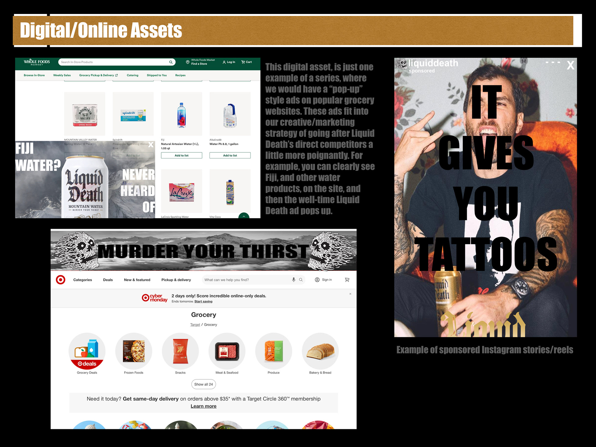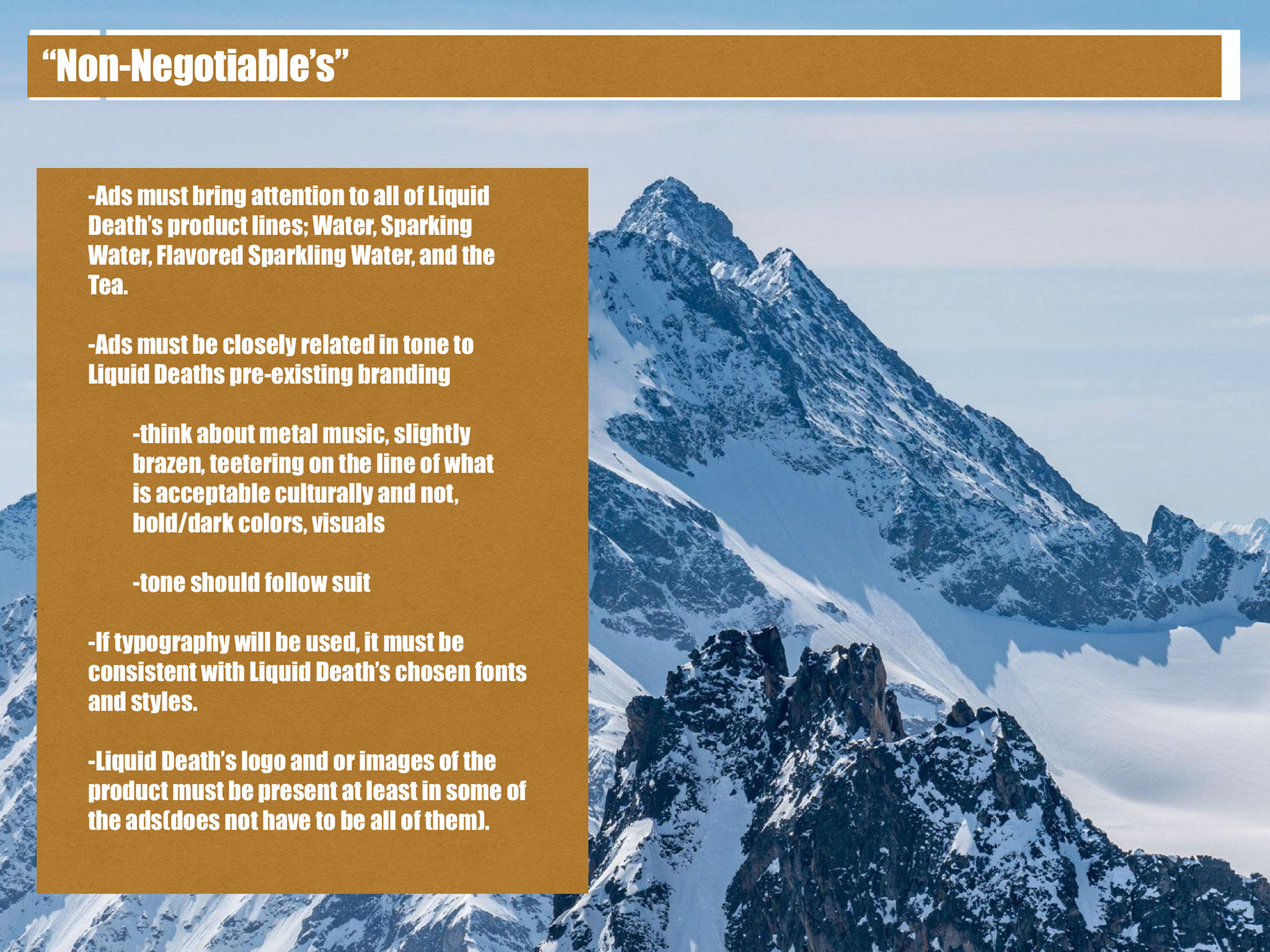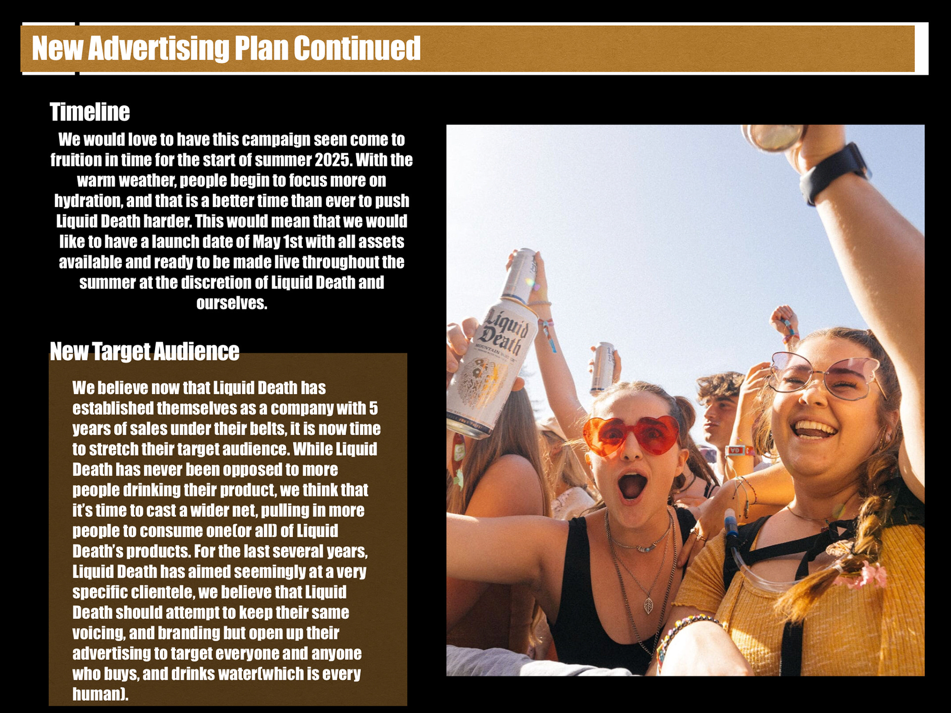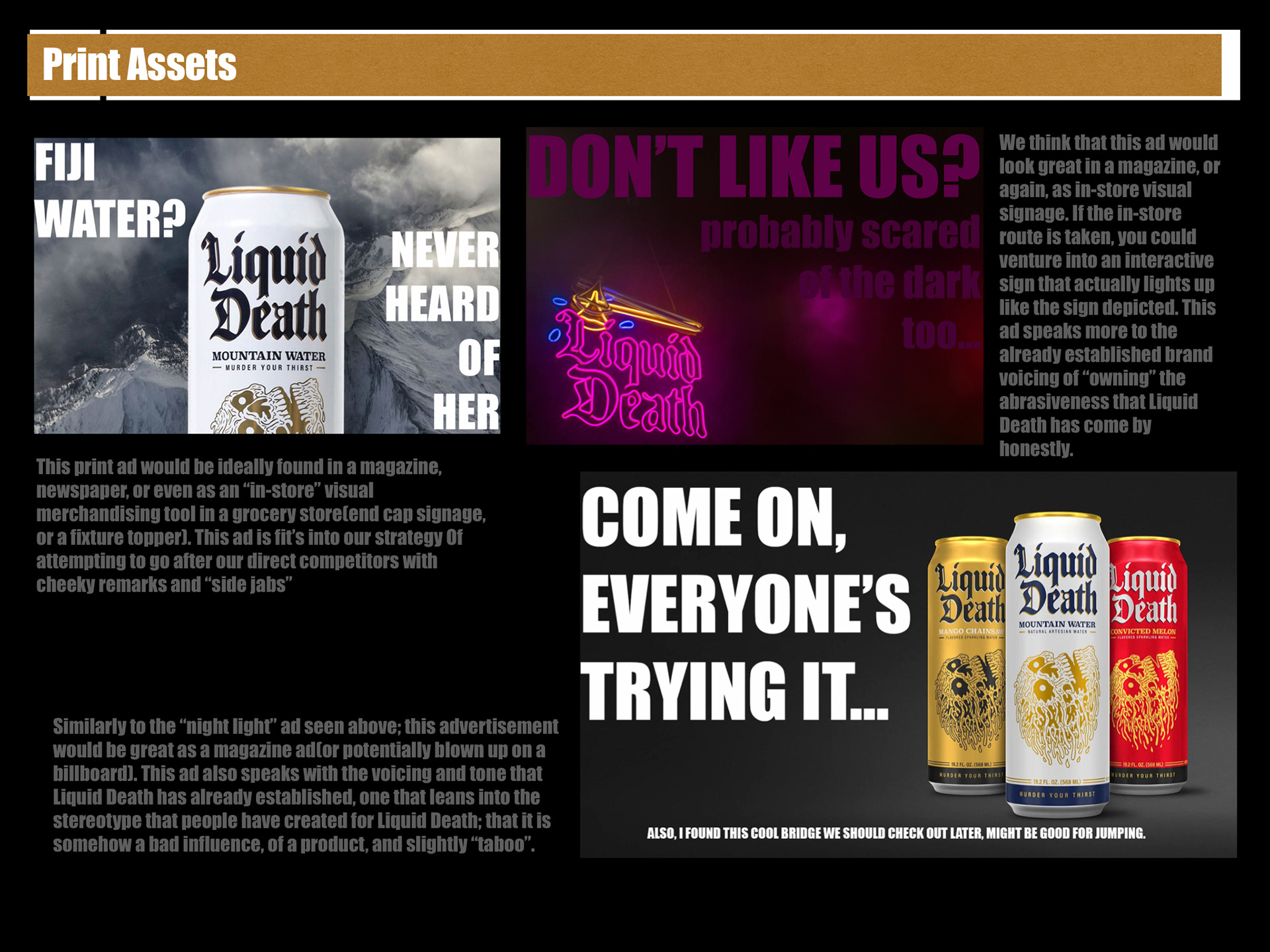 An unofficial/hypothetical creative strategy, advertising plan, and creative components for Liquid Death.