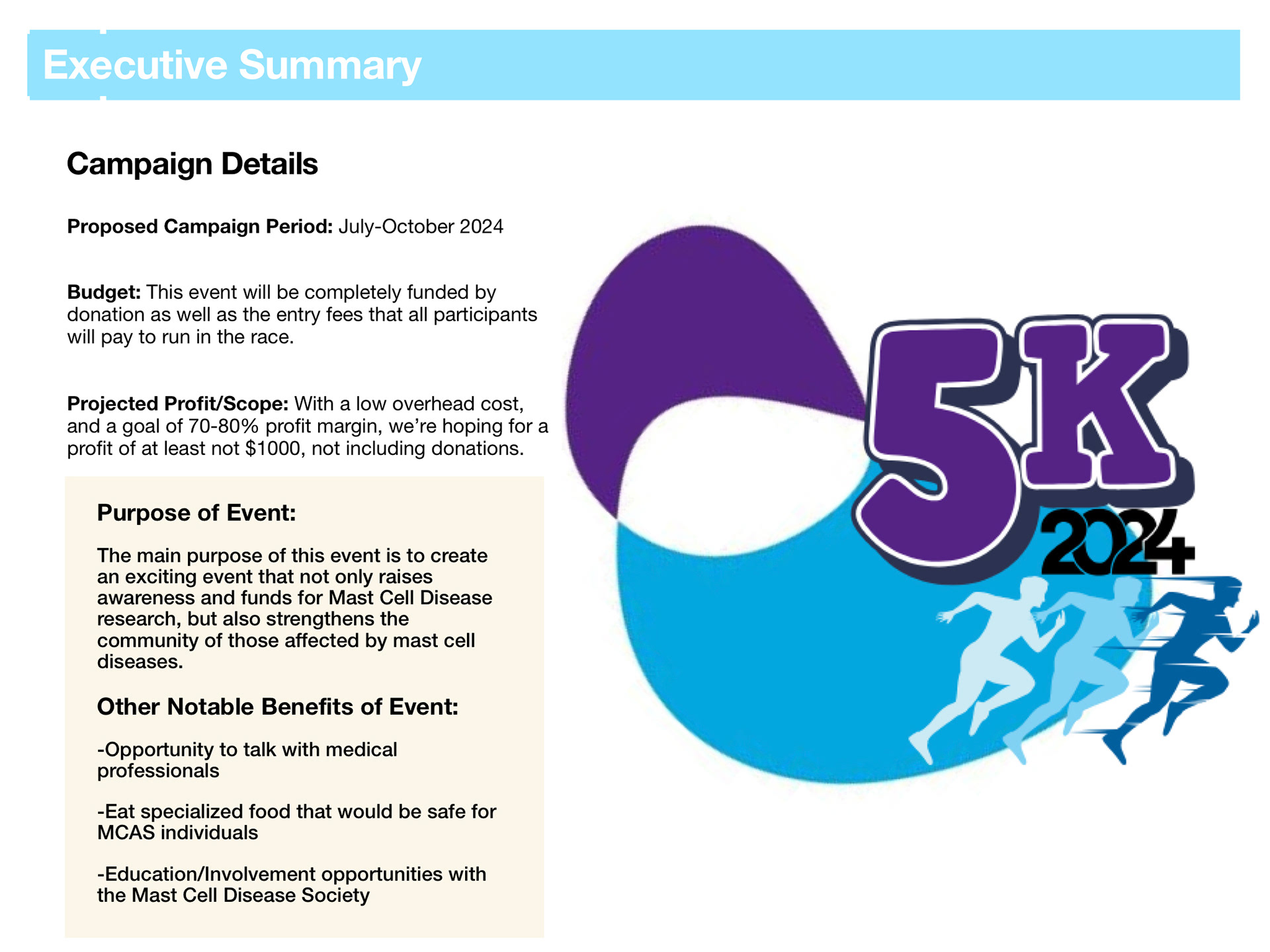 This is a SMS plan book for The Mast Cell Disease Society, and a hypothetical(unofficial) event that they could host.